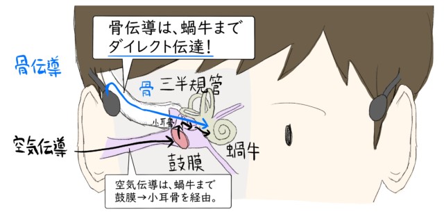 普段ワタクシ達が聞いている音は、『空気伝導』と『骨伝導』の2種類があります。